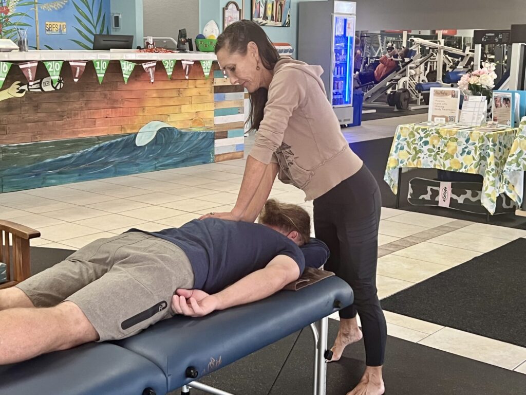 Massage services offered at home office or Cocoa Beach Health and Fitness location. Contact details for seamless booking.